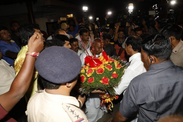 • కేసీఆర్‌కు పుష్పగుచ్ఛం ఇచ్చి ఆహ్వానించిన దేవెగౌడ