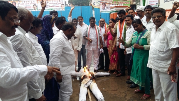 ఈ సందర్భంగా కేంద్రం తీరుపై వారు నిరసన వ్యక్తం చేశారు. కేంద్ర ప్రభుత్వం దిష్టిబొమ్మను దగ్ధం చేశారు. అనంతరం, నరహరిశెట్టి నరసింహారావు మాట్లాడుతూ, విభజన చట్టంలోని అంశాల అమలు, విశాఖ రైల్వేజోన్, పోలవరం ప్రాజెక్టు విధి విధానాలన్నింటినీ బీజేపీ ప్రభుత్వం తుంగలో తొక్కిందని, చంద్రబాబు, మోదీ ఇద్దరూ దొందూ దొందేనని విమర్శించారు. అనంతరం, కాంగ్రెస్ పార్టీ నేతలు, మీసాల రాజేశ్వరరావు, వి.గురునాథం మాట్లాడారు. 2019లో కాంగ్రెస్ పార్టీ అధికారంలోకి రావడం ఖాయమని, అధికారంలోకి రాగానే ప్రత్యేకహోదా ఫైల్ పైనే సంతకం చేసి, ఈ రాష్ట్ర ప్రయోజనాలను కాపాడతామని అన్నారు.