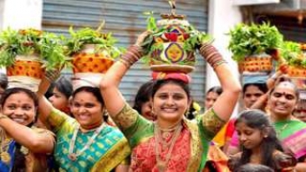 బోనాల సంబురం మొదలైంది. ఆషాఢ మాసం ప్రారంభమైన మరుసటి రోజే ఆదివారం రావడంతో, హైదరాబాద్ గోల్కొండలోని జగదాంబ మహంకాళి అమ్మవారికి బోనమెత్తేందుకు నగరం సిద్ధమైంది. "అమ్మా బైలెల్లినాదో... తల్లీ బైలెల్లినాదో.." అంటూ భక్తులు సందడిగా ఆలయానికి చేరుతున్నారు. పోతరాజుల హంగామా, శివసత్తుల పూనకాలు, డప్పు చప్పుళ్లు, డోలు వాయిద్యాలు భాగ్యనగర వాసుల్లో ఉత్సాహాన్ని నింపుతుండగా, ఆలయ పరిసరాలు కిటకిటలాడుతున్నాయి.