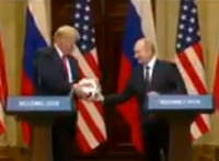 ఫిన్లాండ్ లో ట్రంప్-పుతిన్ లు ఇటీవల నిర్వహించిన సంయుక్త మీడియా సమావేశంలో ఓ ఆసక్తికర సంఘటన జరిగింది. ‘బంతి రష్యా కోర్టులో ఉందా?’ అని పుతిన్ ని ఓ విలేకరి ప్రశ్నించగా, ‘వరల్డ్ కప్ సాకర్ ను విజయవంతంగా పూర్తి చేశామని ట్రంప్ ఇప్పుడే చెప్పారు’ అని పేర్కొన్న పుతిన్.. ‘మిస్టర్ ప్రెసిడెంట్ ఈ బంతిని మీకు ఇస్తున్నాను. బంతి ఇప్పుడు మీ కోర్టులో ఉంది’ అంటూ 2018 వరల్డ్ కప్ సాకర్ బాల్ ను ట్రంప్ కు అందజేశారు. ‘ఈ బంతి మా అబ్బాయి బారన్ వద్దకు వెళుతుంది’ అని చెప్పిన ట్రంప్ దానిని తన సహాయకులకు అందజేశారు.