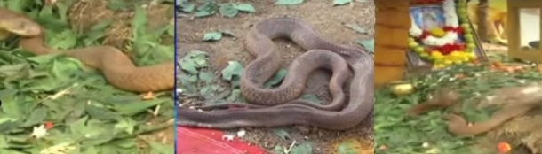 తూర్పుగోదావరి జిల్లాలో గత 16 రోజులుగా జరుగుతున్న వింత ఘటన ఇది. గొల్లప్రోలు మండలం దుర్గాడ గ్రామంలోని పొలాల్లోకి వచ్చిన ఓ గోధుమ రంగు త్రాచుపాము రెండు వారాలు దాటినా అక్కడి నుంచి కదలక పోవడంతో, జనం తండోపతండాలుగా వచ్చి పూజలు చేస్తున్నారు. తొలుత పామును పట్టి దూరంగా విడిచిపెట్టినా, అది తిరిగి అక్కడికే రావడంతో, సాక్షాత్తూ సుబ్రహ్మణ్య స్వామే తమ ఊరికి వచ్చాడని జనం పూజలు చేస్తున్నారు. ఈ విషయం ఆనోటా ఈనోటా పడి అందరికీ తెలియడంతో ప్రస్తుతం దుర్గాడ గ్రామంలో చిన్న సైజు నాగ జాతరే జరుగుతోంది.