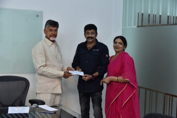 శ్రీకాకుళం జిల్లాను తిత్లీ తుపాను తీవ్రంగా వణికించింది. కొబ్బరి, జీడి మామిడి, అరటి పంటలతో పాటు చాలా ఇళ్లు కూడా దెబ్బతిన్నాయి. ఈ నేపథ్యంలో పలువురు సినీ, రాజకీయ ప్రముఖులు శ్రీకాకుళం జిల్లాను ఆదుకునేందుకు ముందుకు వస్తున్నారు. టాలీవుడ్ హీరోలు ఎన్టీఆర్, అల్లు అర్జున్, బాలకృష్ణ‌, విజయ్ దేవరకొండ, కళ్యాణ్ రామ్ సహా పలువురు ఇప్పటికే సాయాన్ని ప్రకటించారు. తాజాగా హీరో రాజశేఖర్, ఆయన భార్య జీవితలు ఏపీ ముఖ్యమంత్రి చంద్రబాబును కలుసుకున్నారు.