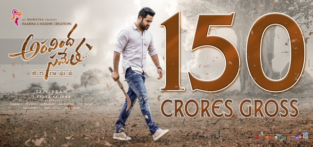 దసరా కానుకగా ప్రేక్షకుల ముందుకు వచ్చిన 'అరవింద సమేత'కు కాసుల వర్షం కురిసింది. అటు త్రివిక్రమ్ కెరియర్లోను .. ఇటు ఎన్టీఆర్ కెరియర్లోను ఈ సినిమా చెప్పుకోదగినదిగా నిలిచింది. 2 వారాలను పూర్తిచేసుకున్న ఈ సినిమా 150 కోట్ల మార్క్ ను దాటేసింది. తెలుగులో అత్యధిక గ్రాస్ వసూళ్లను రాబట్టిన టాప్ 5 సినిమాల్లో ఒకటిగా నిలిచేందుకు పరుగులు తీస్తోంది.