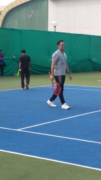 .@msdhoni spotted at JSCA earlier today, Tennis Time!#msdhoni #Ranchi #mahiway pic.twitter.com/Hp9uymcDYT
