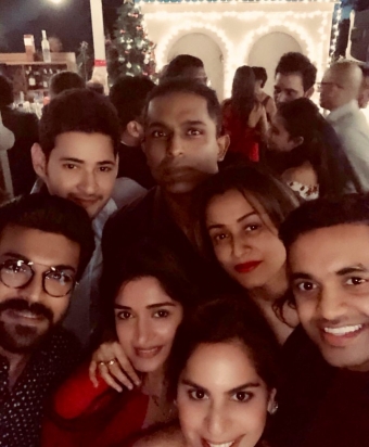 Superstar @urstrulyMahesh, Mega Power Star #RamCharan at Christmas Celebrations last night pic.twitter.com/Ja9ip1Y3zL