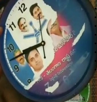 YSRCP: జగన్ చిత్రం కింద టీఆర్ఎస్ నేతల ఫొటోలు... గడియారాలపై వివరణ ఇచ్చిన వైకాపా!