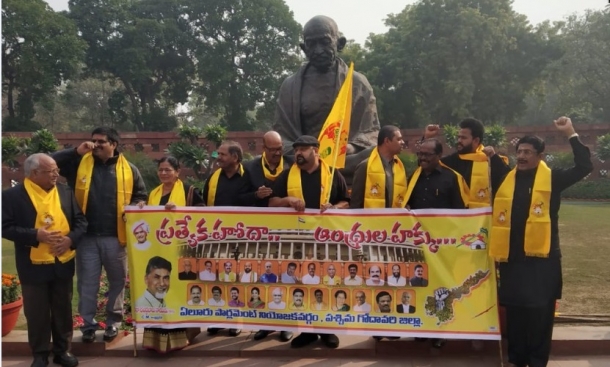 ఆంధ్రప్రదేశ్ కు ప్రత్యేకహోదా, విభజన హామీలను అమలు చేయాలని కోరుతూ అటు టీడీపీ, ఇటు వైసీపీ సభ్యులు ఈరోజు పార్లమెంటు ఆవరణలో ఆందోళనకు దిగారు. గాంధీ విగ్రహం ముందు ఆందోళనకు దిగిన టీడీపీ సభ్యులు ఏపీకి కేంద్రం అన్యాయం చేసిందని మండిపడ్డారు. ప్రత్యేకహోదా-ఆంధ్రుల హక్కు, ఏపీకి న్యాయం చేయాలి.. అంటూ నినాదాలు చేశారు. ఏపీకి ప్రత్యేకహోదా ఇవ్వాలని డిమాండ్ చేశారు.