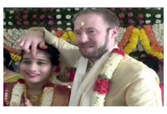 ఇటీవల కాలంలో మనదేశంలో కూడా ఖండాంతర వివాహలు ఎక్కువగా జరుగుతున్నాయి. విద్య, ఉపాధి అవకాశాల కోసం విదేశాలకు వెళుతున్న మనవాళ్లు పాశ్చాత్యులను ప్రేమించి పెళ్లి చేసుకుంటున్న ఘటనలు అక్కడక్కడ చోటుచేసుకుంటున్నాయి. తాజాగా, చిత్తూరు జిల్లాకు చెందిన శ్రీనిరీష అనే అమ్మాయి అమెరికా దేశీయుడు ఆండ్రూ గ్రెయినర్ తో మూడు ముళ్లు వేయించుకుంది. గురువారం హిందూ వివాహ పద్ధతిలో జరిగిన ఈ పెళ్లికి చిత్తూరులోని ఓ హోటల్ వేదికగా నిలిచింది.
