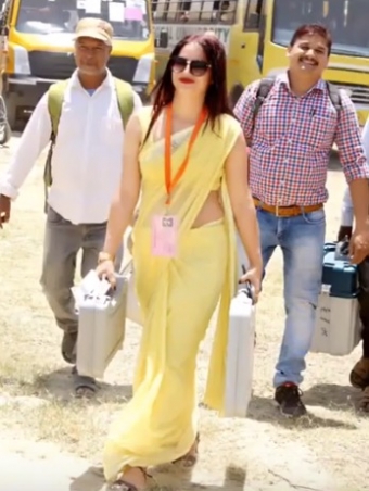 లేత పసుపు రంగు చీర, మ్యాచింగ్ స్లీవ్ లెస్ జాకెట్, కళ్లద్దాలు పెట్టుకుని, జారవిడిచిన కురులతో, ఓ చేత్తో సెల్ ఫోన్, మరో చేత్తో ఈవీఎంను పట్టుకుని, ర్యాంప్ పై క్యాట్ వాక్ చేస్తున్నట్టుగా కనిపిస్తున్న ఓ ఎన్నికల అధికారిణి ఫోటోలు వైరల్ కావడంతో, ఆమె ఎవరో తెలుసుకునేందుకు నెటిజన్లు నానా తంటాలూ పడ్డారు.
