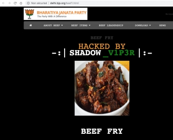 షాడో వీఐపీ3ఆర్ అనే పేరుతో ఢిల్లీ బీజేపీ వెబ్ సైట్ ను హ్యాక్ చేసినట్టు తెలుస్తోంది. వెబ్ సైట్ ఓపెన్ చేయగానే అందులో బీఫ్ కర్రీ, బీఫ్ వేపుడు వంటి పలు వంటకాలు కనిపించాయి. పలు పేజీల్లో బీఫ్ చరిత్ర, బీఫ్ లో వెరైటీల గురించి వివరించారు. ఫ్రాన్స్ కు చెందిన సైబర్ సెక్యూరిటీ నిపుణుడు ఎలియట్ ఆల్డర్సన్ చెప్పడంతో బీజేపీ వర్గాలు తమ వెబ్ సైట్ హ్యాకింగ్ కు గురైనట్టు గుర్తించాయి. వెంటనే రంగంలోకి దిగిన బీజేపీ సైబర్ నిపుణులు వెబ్ సైట్ ను సాధారణ స్థితికి తీసుకువచ్చారు.
