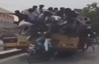 తాజాగా చెన్నై రూట్ నంబర్ 47ఏలో ప్రయాణిస్తున్న ఓ బస్ పైకి 50 మంది వరకూ విద్యార్థులు ఎక్కి అల్లరల్లరి చేస్తున్న వేళ, డ్రైవర్ బ్రేక్ వేయడంతో పైనున్న దాదాపు 30 మంది ఒక్కసారిగా కిందపడిపోయారు. ఓ ద్విచక్ర వాహనాన్ని ఢీకొట్టకుండా ఉండే క్రమంలో డ్రైవర్ బ్రేక్ వేసినట్టు ఈ వీడియోను చూస్తుంటే తెలుస్తోంది.