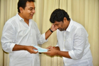 TRS: నెలజీతం చెక్కును విరాళంగా కేటీఆర్ కు అందించిన బాల్క సుమన్