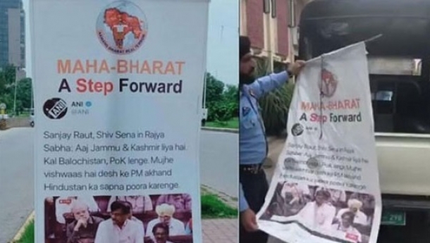 'మహాభారత్ దిశగా ముందడుగు' అని బ్యానర్లో పేర్కొన్నారు. అంతేకాదు, అఖండ భారత్ లక్ష్యాన్ని ప్రధాని మోదీ పూర్తి చేయాలంటూ శివసేన ఎంపీ సంజయ్ రౌత్ పార్లమెంటులో చేసిన వ్యాఖ్యలను బ్యానర్ పై ప్రింట్ చేశారు. ఈ బ్యానర్లను స్థానికులు చాలా సేపు ఆసక్తికరంగా చూశారు. ఆ తర్వాత కొందరు పోలీసులకు సమాచారం ఇవ్వడంతో... వారు వచ్చి ఫ్లెక్సీలను తొలగించారు. ఈ విషయాన్ని పాకిస్థాన్ లోని ప్రముఖ పత్రిక డాన్ ప్రచురించింది. మరోవైపు, దీనికి సంబంధించి ఓ అనుమానితుడిని అదుపులోకి తీసుకున్నట్టు తెలుస్తోంది.