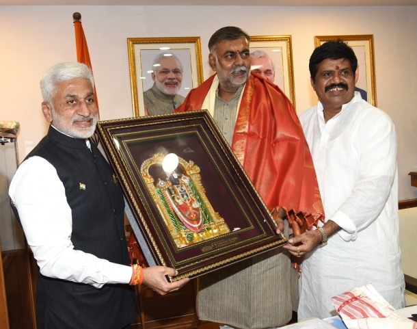 కేంద్రమంత్రి ప్రహ్లాద్ సింగ్ పటేల్ ను వైసీపీ నేతలు కలిశారు. ఏపీలో త్వరలో నిర్వహించనున్న టూరిజం ఇన్వెస్ట్ మెంట్ సమ్మిట్ కు రావాల్సిందిగా ఈ సందర్భంగా ప్రహ్లాద్ సింగ్ ను ఆహ్వానించారు. ఇదే సమయంలో కేంద్ర పర్యాటకశాఖ నుంచి రాష్ట్రానికి రావాల్సిన రూ. 900 కోట్లను విడుదల చేయాలని విన్నవించారు. టీడీపీ ప్రభుత్వ హయాంలో విజయవాడలో కూల్చివేసిన 24 దేవాలయాల నిర్మాణానికి నిధులను ఇవ్వాలని కోరారు. కేంద్రమంత్రిని కలిసిన వారిలో విజయసాయిరెడ్డి, అవంతి శ్రీనివాస్ తదితరులు ఉన్నారు.