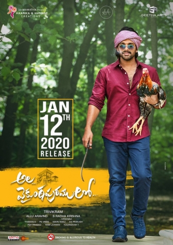 అల్లు అర్జున్ హీరోగా త్రివిక్రమ్ శ్రీనివాస్ దర్శకత్వంలో తెరకెక్కుతున్న 'అల వైకుంఠపురములో చిత్రం రిలీజ్ డేట్ ఖరారైంది. సంక్రాంతి కానుకగా వస్తున్న ఈ చిత్రం వచ్చే ఏడాది జనవరి 12న ప్రపంచవ్యాప్తంగా విడుదల కానుంది. ఈ విషయాన్ని అల్లు అర్జున్ సోషల్ మీడియాలో ప్రకటించారు. ఈ సందర్భంగా ఓ పోస్టర్ ను కూడా ట్వీట్ చేశాడు. అందులో బన్నీ, తలపాగా కట్టి, ఓ చేతిలో పందెంకోడి, మరో చేతిలో వేటకత్తితో మాస్ లుక్ తో కనిపిస్తున్నాడు.