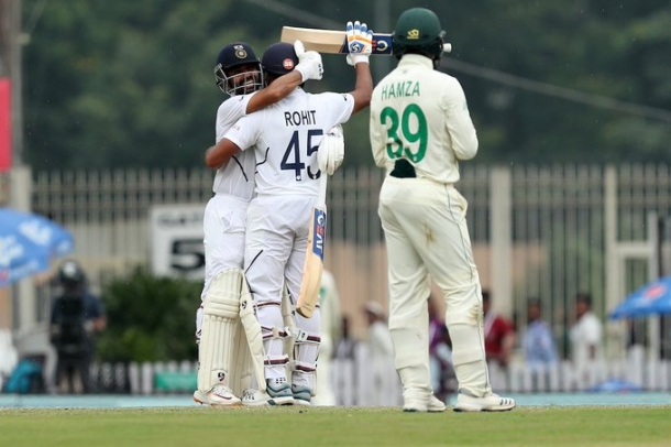 భారత్ - దక్షిణాఫ్రికా మధ్య రాంచీ వేదికగా సాగుతున్న మూడో టెస్ట్ మ్యాచ్ తొలిరోజు ఆట టీ విరామం తర్వాత వర్షం రావడంతో నిలిచిపోయింది. అప్పటికి భారత్ స్కోరు 3 వికెట్ల నష్టానికి 224 పరుగులు. ఓపెనర్ రోహిత్ శర్మ 117 పరుగులు, అజింక్య రహానే 83 పరుగులతో బ్యాటింగ్ చేస్తున్నారు. మరో ఓపెనర్ మయాంక్ అగర్వాల్ 10 పరుగులు చేసి పెవిలియన్ చేరగా, పుజారా డకౌట్ కాగా కోహ్లీ కేవలం 12 పరుగులు మాత్రమే చేసి నోర్ట్ జె బౌలింగ్ లో ఎల్బీడబ్ల్యుగా ఔటయ్యాడు.