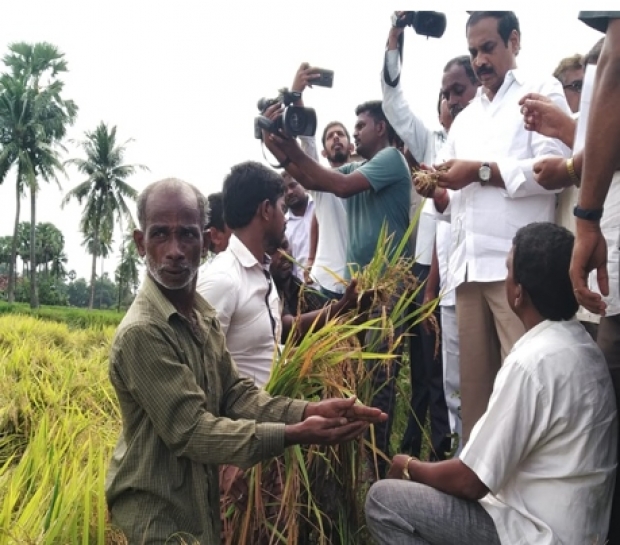 కాగా, తూర్పుగోదావరి జిల్లాలో ఇటీవల కురిసిన భారీ వర్షాల వల్ల నీట మునిగిన వరి పొలాలను అధికారులతో కలిసి కన్నబాబు పరిశీలించారు. కరప మండలం వేములవాడ, వాకాడ గ్రామంలోని పొలాలను పరిశీలించారు. తమకు జరిగిన నష్టం గురించి మంత్రికి కౌలు రైతులు వివరించి చెప్పారు.