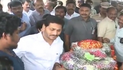 - నారాయణ మృతదేహంపై పుష్పగుచ్ఛం ఉంచి నివాళి
