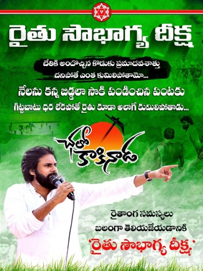 ఈ దీక్షకు 'రైతు సౌభాగ్య దీక్ష' అని పేరు పెట్టిన సంగతి తెలిసిందే. రాష్ట్రంలోని రైతులు పడుతున్న సమస్యలను ప్రభుత్వం దృష్టికి తీసుకెళ్లేందుకే తాను దీక్ష చేస్తున్నట్టు పవన్ ఇప్పటికే ప్రకటించారు. గిట్టుబాటు ధరలు లభించక, రైతులు ఆత్మహత్యలు చేసుకుంటున్నారని, వారి కష్టాలను, ఆవేదనను ప్రభుత్వం పట్టించుకోవడం లేదని విమర్శించారు.