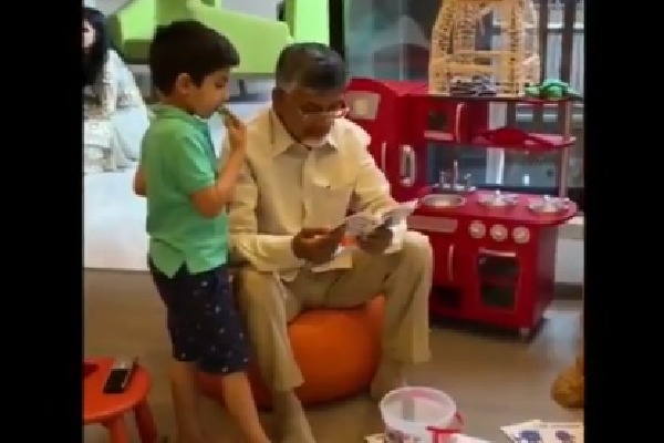 - మనవడికి పుస్తకం చదివి వినిపిస్తోన్న టీడీపీ అధినేత