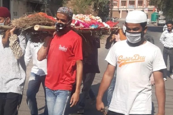 లాక్ డౌన్ కారణంగా మరణించిన మహిళ బంధుమిత్రులు ఎవరూ అంత్యక్రియలకు హాజరు కాలేకపోయారు. దీంతో చుట్టుపక్కల ఉన్న ముస్లిం యువకులు, మాస్క్ లు ధరించి, మృతురాలి కుమారులకు సహకరించారు. దాదాపు 2.5 కిలోమీటర్ల దూరంలో ఉన్న శ్మశానానికి మృతదేహాన్ని తీసుకెళ్లేందుకు ఏ విధమైన వాహనమూ అందుబాటులో లేకపోవడంతో, తమ భుజాలపై పాడెను మోశారు.