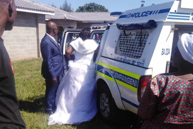 స్థానిక వార్తా సంస్థ కథనం ప్రకారం.. 48 ఏళ్ల జబులాని జులు అనే వ్యక్తి నొమ్తాండాజొ మెక్ జీ (38)ని ఆదివారం వివాహం చేసుకున్నాడు. క్వాజులు- నటాల్ అనే ప్రాంతంలో ఈ పెళ్లి జరిగింది. అయితే కరోనా నేపథ్యంలో ప్రజలు గుమికూడడంపై అక్కడ నిషేధం ఉంది. అయినా.. జులు, మెక్ జీ పెళ్లి వేడుక జరుగుతున్న విషయం తెలియడంతో ఆయుధాలు ధరించిన పోలీసులు అక్కడికి చేరుకున్నారు.