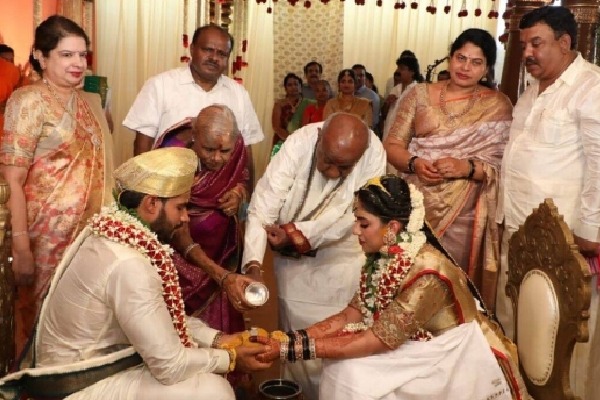నిఖిల్ వివాహం మాజీ మంత్రి, కాంగ్రెస్ నేత కృష్ణప్ప మనవరాలు రేవతితో కేతగనహళ్లి ఫార్మ్ హౌస్ లో జరిగింది. ఈ వేడుకకు మాజీ ప్రధాని దేవెగౌడ బంధువర్గం నుంచి 60 మంది, పెళ్లికూతురు తరఫు బంధువులు మరో 30 మంది వరకు విచ్చేశారు. అంతేకాదు, ఇరు కుటుంబాల సన్నిహితులు కూడా హాజరయ్యారు.