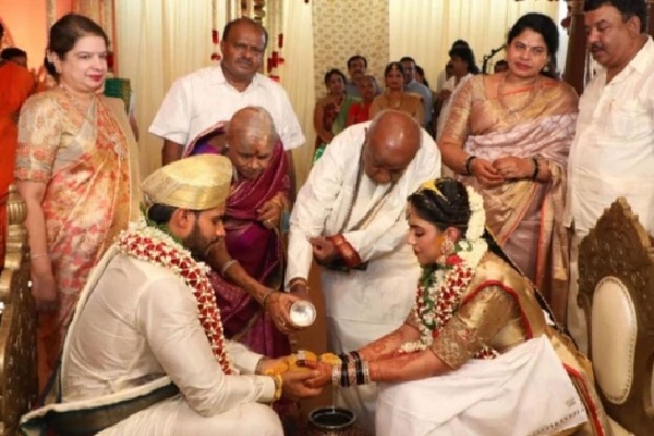 కరోనా కట్టడికి దేశవ్యాప్తంగా లాక్‌డౌన్ అమలవుతున్న వేళ కుమారుడి పెళ్లి చేసి కర్ణాటక మాజీ ముఖ్యమంత్రి కుమారస్వామి తీవ్ర విమర్శల పాలయ్యారు. పెళ్లి సందర్భంగా సామాజిక దూరం పాటించని మాజీ ప్రధాని దేవెగౌడను అరెస్ట్ చేయాలన్న డిమాండ్లు కూడా వినిపిస్తున్నాయి. దేవెగౌడ మనవడు, కుమారస్వామి కుమారుడైన నటుడు నిఖిల్‌.. కాంగ్రెస్ నేత, మాజీ మంత్రి కృష్ణప్ప మనవరాలు రేవతి వివాహం నిన్న రాంనగర్ కేతగానహళ్లి ఫాం హౌస్‌లో జరిగింది. దేవెగౌడ కుటుంబ సభ్యులు, వధువు తల్లిదండ్రులు, కొద్దిమంది సన్నిహితులు మాత్రమే ఈ పెళ్లికి హాజరయ్యారు.