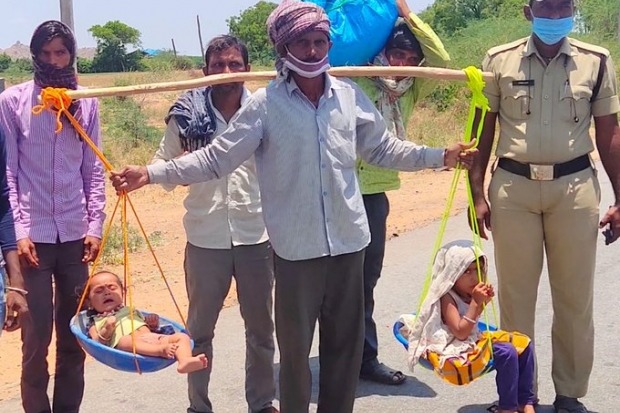 లాక్డౌన్ నేపథ్యంలో సొంత గ్రామాలకు వెళ్లేందుకు కూలీలు పడుతున్న కష్టాలు వర్ణనాతీతం. పిల్లలతో కలిసి వేలాది కిలోమీటర్లు నడుచుకుంటూ వెళ్తూ వారు పడుతున్న బాధలు చూసి పోలీసులు కూడా చలించి పోతున్నారు. కడప నుంచి ఛత్తీస్గఢ్కు వెళ్లేందుకు తమ పసి పిల్లలను ఓ కుటుంబం డోలిలో కూర్చోబెట్టుకుని తీసుకెళ్లింది. ఈ విషయాన్ని గుర్తించిన పోలీసులు వారికి సాయం చేశారు.