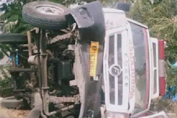- లారీని తప్పించబోయి బోల్తా కొట్టిన అంబులెన్స్