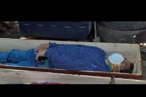 - మాస్కు ధరించి శవపేటికలో పడుకున్న మేయర్