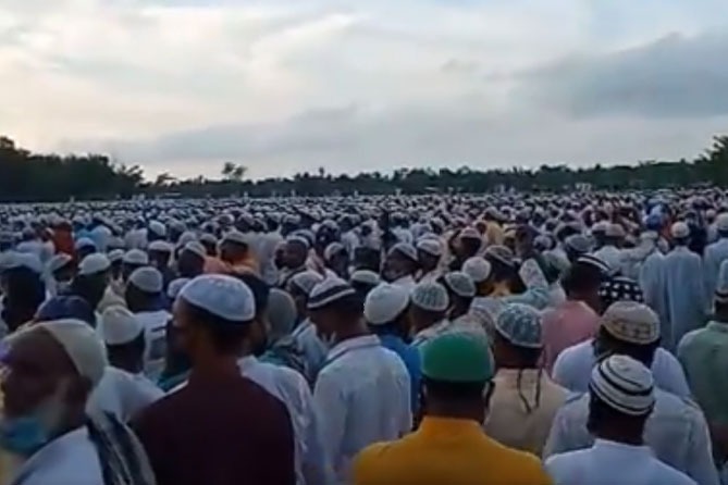 ఈ కార్యక్రమంలో ఏకంగా పదివేల మందికిపైగా పాల్గొన్నారు. కరోనా కేసులతో భయపడుతున్న వేళ భౌతిక దూరాన్ని గాలికి వదిలేసి వేలాది మంది పాల్గొనడం సంచలనమైంది. ఇందుకు సంబంధించిన ఫొటోలను ఇస్లాం కుమారుడు, ఆల్ ఇండియా యునైటెడ్ డెమోక్రటిక్ ఫ్రంట్ పార్టీకి చెందిన అమీనుల్ సోషల్ మీడియాలో పంచుకోవడంతో వైరల్ అయ్యాయి. దీంతో అప్రమత్తమైన అధికారులు వెంటనే మూడు గ్రామాల్లో లాక్డౌన్ విధించారు. మరోవైపు, కోవిడ్ నిబంధనలు ఉల్లంఘించడంతో పోలీసులు రెండు కేసులు నమోదు చేశారు.