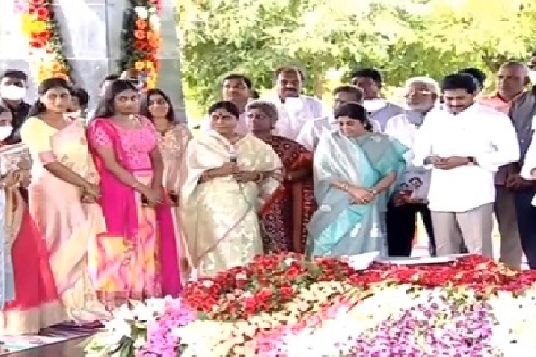 మాజీ సీఎం దివంగత వైఎస్ రాజశేఖరరెడ్డి 71వ జయంతి సందర్భంగా ఇడుపులపాయలోని వైఎస్సార్ ఘాట్ వద్ద ఆయనకు కుటుంబసభ్యులు ఈ రోజు నివాళులు అర్పించారు. వైఎస్ జగన్తో పాటు విజయమ్మ, భారతి, షర్మిల, అనిల్ కుమార్, ఎంపీ వైఎస్ అవినాష్ రెడ్డి తదితరులు ఈ కార్యక్రమంలో పాల్గొన్నారు. ఈ సందర్భంగా విజయమ్మ రాసిన 'నాలో.. నాతో వైఎస్సార్' పుస్తకాన్ని ముఖ్యమంత్రి జగన్ ఆవిష్కరించారు.