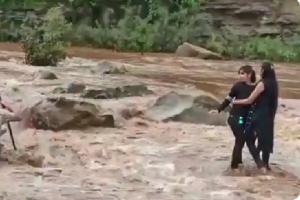 Selfie: ఉరకలెత్తే వరద నీటిలో సెల్ఫీ కోసం వెళ్లి చిక్కుకుపోయిన ఇద్దరమ్మాయిలు... కాపాడిన పోలీసులు!