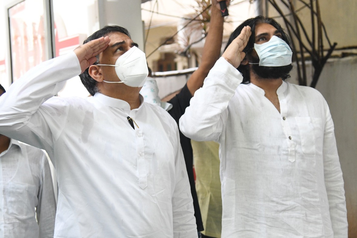 స్వాతంత్ర్య దినోత్సవాన్ని పురస్కరించుకుని జనసేన అధినేత పవన్ కల్యాణ్ హైదరాబాద్లోని పార్టీ కార్యాలయంలో త్రివర్ణ పతకాన్ని ఆవిష్కరించారు. అనంతరం భరతమాత, గాంధీజీ చిత్రపటాలకు పూలమాలలు వేసి నివాళులు అర్పించారు. కార్యక్రమంలో జనసేన రాజకీయ వ్యవహారాల కమిటీ చైర్మన్ నాదెండ్ల మనోహర్, తెలంగాణ ఇన్చార్జ్ శంకర్ గౌడ్, పార్టీ ముఖ్యనేతలు పాల్గొన్నారు. కాగా, కొవిడ్-19 నేపథ్యంలో సామాజిక దూరం వంటి నిబంధనలు పాటిస్తూ కార్యక్రమాన్ని నిర్వహించారు.
