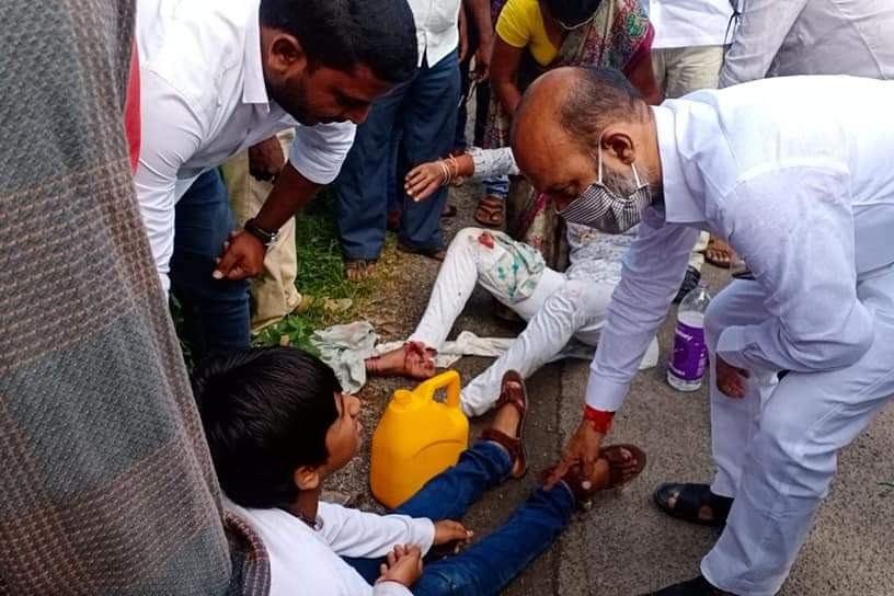 Telangana BJP Chief Bandi Sanjay helps a couple who injured on road