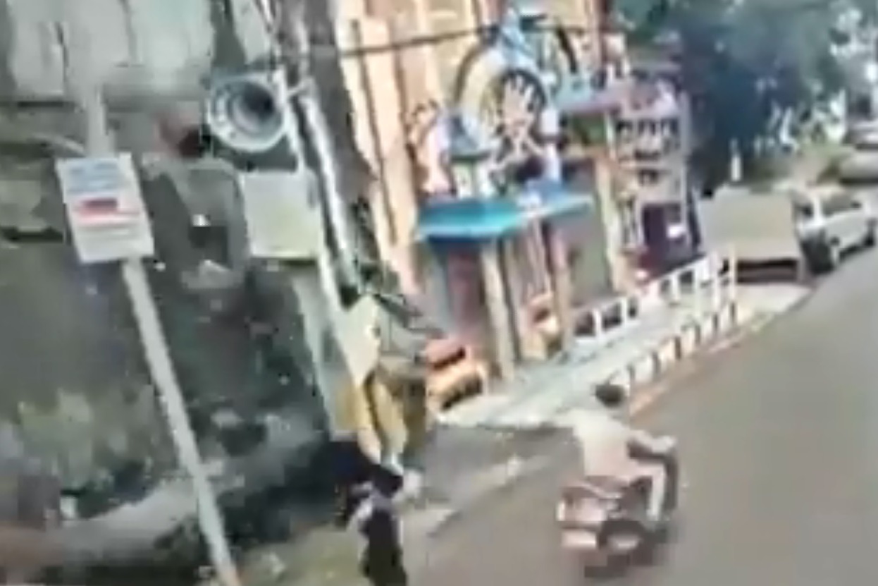 ప్రమాదాన్ని గమనించిన ఆమె, వేగంగా పరుగు పెట్టింది. ఈ ఘటనలో ఆమెకు స్వల్ప గాయాలు అయినట్టు తెలుస్తోంది. భవనం కూలడంతో ఆ ప్రాంతంలో భారీ ఎత్తున ట్రాఫిక్ జామ్ అయింది. కాగా, గత కొన్ని రోజులుగా నగరవ్యాప్తంగా భారీ వర్షం కురుస్తుండగా, బుధవారం పగటి పూట మాత్రం వర్షం కురవలేదు.