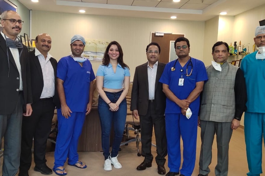 - ఆసుపత్రికి వచ్చి వైద్యులను, ఇతర సిబ్బందిని కలిసిన తమన్నా