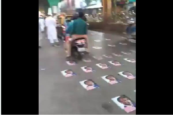 - భేండీ బజార్ రోడ్డుపై దర్శనమిచ్చిన మేక్రాన్ చిత్రాలు
