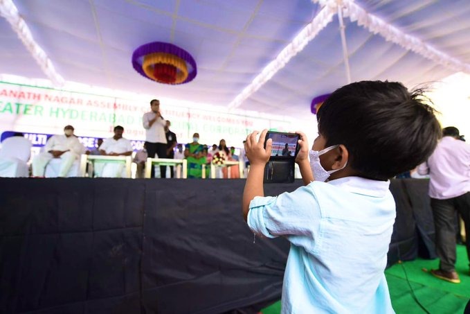 ఈ సందర్భంగా పలు చోట్ల కేటీఆర్ ప్రసంగాలు చేశారు. ఈ సందర్భంగా ఓ చిన్నారి స్మార్ట్ఫోనులో కేటీఆర్ ఫొటోను చాలా చక్కగా తీశాడు. ఈ విషయాన్ని గుర్తించిన కేటీఆర్.. ఆ బాలుడు ఫొటో తీస్తుండగా మరొకరు తీసిన అతడి ఫొటోను కేటీఆర్ పోస్ట్ చేశారు.