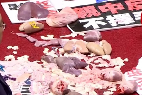 తైవాన్ పార్లమెంటులో నిన్న విచిత్రమైన వాతావరణం కనిపించింది. ప్రభుత్వంపై ఆగ్రహం చెందిన ప్రతిపక్ష నేతలు పంది అవయవాలు, మాంసాన్ని అధికార పార్టీ నాయకులపై విసిరారు. చైనా దుందుడుకు చర్యలను వ్యతిరేకిస్తోన్న తైవాన్ ఇటీవల అగ్రరాజ్యం అమెరికాతో సత్సంబంధాలను మరింత బలపర్చుకున్న విషయం తెలిసిందే. దీంతో తైవాన్ ప్రభుత్వం అమెరికాతో వాణిజ్య బంధం ఏర్పరచుకునేందుకు ఏర్పాట్లు చేసుకుంటోంది.