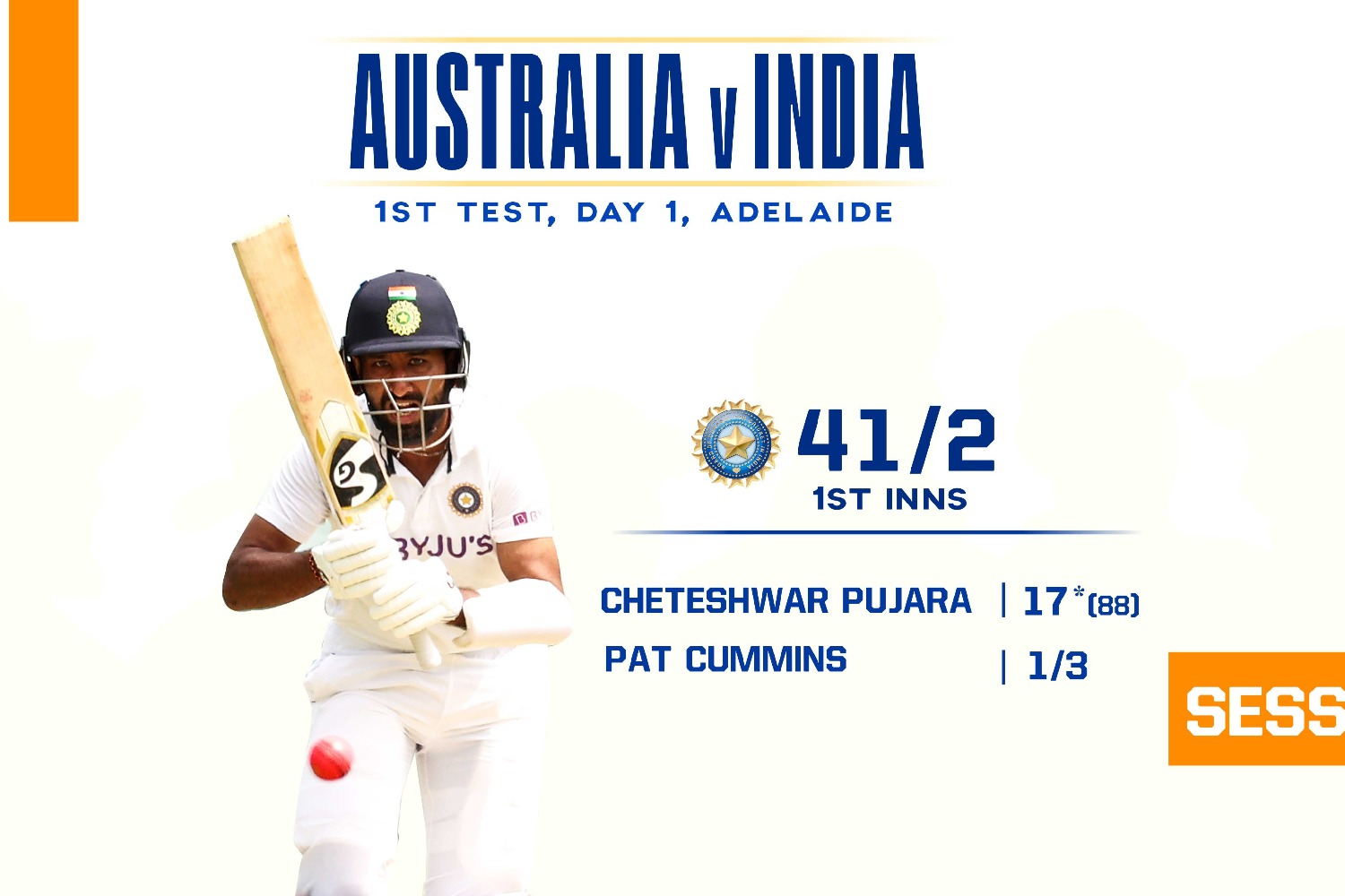 అడిలైడ్ లో జరుగుతున్న తొలి టెస్టులో టాస్ గెలిచి బ్యాటింగ్ ఎంచుకున్న ఇండియా ఇన్నింగ్స్ నిదానంగా సాగుతోంది. ఈ మ్యాచ్ తొలి ఓవర్లోనే ఓపెనర్ పృథ్వీ షా డక్కౌట్ కాగా, ఆపై మయాంక్ అగర్వాల్ దాదాపు గంటన్నర పాటు క్రీజులో ఉండి, 40 బంతులను ఎదుర్కొని 17 పరుగులు చేసి కుమిన్స్ బౌలింగ్ లో అవుట్ అయ్యాడు. ఆపై క్రీజులో ఉన్న ఛటేశ్వర్ పుజారాకు విరాట్ కోహ్లీ జత చేరగా, ఇద్దరూ కలిసి ఇన్నింగ్స్ ను నిలబెట్టే పనిలో పడ్డారు.