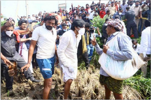 పొలంలో నీటమునిగి కుళ్లిపోయిన వరి కంకులను పవన్ కు చూపించి, ఇంత దారుణంగా పంట నాశనం అయితే రైతు బతికేదెలా అని ఆక్రోశించాడు. తమకు వ్యవసాయ పనులే ప్రధాన ఆధారమని, తమలాంటి వాళ్ల గురించి పట్టించుకునేదెవరు అని ఆవేదన వెలిబుచ్చాడు. రైతు కూలీలను ప్రభుత్వం ఆదుకోకపోతే రైతులు రోడ్డున పడే పరిస్థితులు వస్తాయని సురేశ్ జనసేనానికి స్పష్టం చేశాడు.