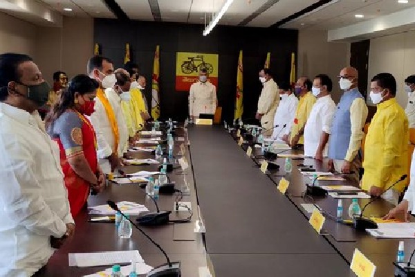 పొలిట్ బ్యూరోలో కొత్తగా స్థానం సంపాదించుకున్న వారికి చంద్రబాబు స్వాగతం పలికారు. అనంతరం వారితో ప్రమాణస్వీకారం చేయించారు. అనంతరం పొలిట్ బ్యూరో సమావేశమైంది. రాష్ట్రంలో చోటుచేసుకుంటున్న రైతుల ఆత్మహత్యలు, దాడులు, సహజ మరణాలలో చనిపోయిన వారికి టీడీపీ పోలిట్ బ్యూరో సమావేశంలో నివాళులు అర్పిస్తూ 2 నిమిషాలు మౌనం పాటించారు .