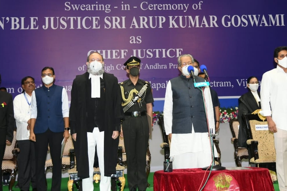 ఏపీ హైకోర్టు ప్రధాన న్యాయమూర్తిగా జస్టిస్ అరూప్కుమార్ గోస్వామితో విజయవాడలోని తుమ్మలపల్లి కళాక్షేత్రంలో గవర్నర్ బిశ్వభూషణ్ హరిచందన్ ప్రమాణ స్వీకారం చేయించారు. ఇందులో ఏపీ ముఖ్యమంత్రి వైఎస్ జగన్ తో పాటు రాష్ట్ర ప్రభుత్వ ప్రధాన కార్యదర్శి ఆదిత్యనాథ్ దాస్, పలువురు న్యాయమూర్తులు పాల్గొన్నారు.