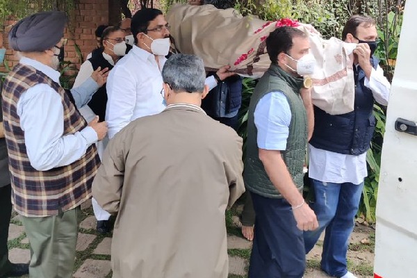 కేంద్ర మాజీ మంత్రి, గాంధీ కుటుంబానికి విధేయుడు కెప్టెన్ సతీశ్ శర్మ (73) అనారోగ్యంతో రెండు రోజుల క్రితం గోవాలో కన్నుమూసిన విషయం తెలిసిందే. ఈ రోజు ఆయన అంత్యక్రియలను ఢిల్లీలో జరుపుతున్నారు. ఈ నేపథ్యంలో ఆయన పాడెను కాంగ్రెస్ నేత రాహుల్ గాంధీతో పాటు పలువురు నేతలు మోశారు.