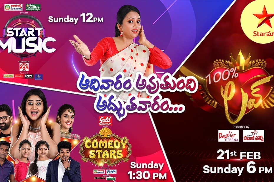 ప్రెస్ నోట్: వారంలో ఆదివారానికో ప్రత్యేకత ఉంటుంది. ఆదివారం ఎలా గడపాలా అని వీక్ అంతా ఆలోచిస్తుంటారు చాలా మంది. ఫ్యామిలీలో వారమంతా ఎవరెంత బిజీగా వున్నా అందరూ కలిసి ఉండేది మాత్రం ఆ ఒక్క రోజే. అలాంటి ఆదివారానికి (ఫిబ్రవరి 21న) స్టార్ మా ఓ కొత్త "మెనూ అఫ్ ఎంటర్ టైన్మెంట్" ని సిద్ధం చేసింది.