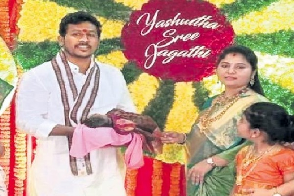 ఈ సందర్భంగా పుష్ప శ్రీవాణి దంపతులు మాట్లాడుతూ, తమ బిడ్డ పేరులో తమ అభిమాన నేతలందరి పేర్లూ కలిసున్నాయని, యశ్వితలో తొలి అక్షరం వై కాగా, శ్రీజగతిలో ఎస్ తో పాటు జగన్, భారతి పేర్లు ఉంటాయని తెలిపారు.