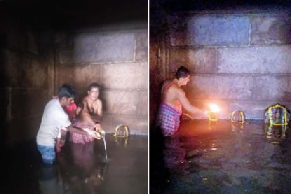 వేపదారు శివలింగం మాత్రం అడుగు మేర నీటిలోనే ఉండిపోయింది. జలాశయ నీటిమట్టం మరో అడుగు తగ్గితే శివలింగం పూర్తిగా దర్శనమిస్తుంది. ఆలయం బయటకు రావడంతో పురోహితులు ప్రత్యేక పూజలు చేశారు. రేపటి నుంచి ఆలయంలో పూర్తిస్థాయిలో పూజలు జరిగే అవకాశం ఉందని పూజారులు తెలిపారు.