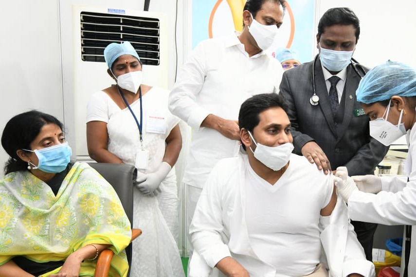 Jagan: అర్ధాంగి భారతితో కలిసి వెళ్లి గుంటూరులో కరోనా వ్యాక్సిన్ వేయించుకున్న జగన్